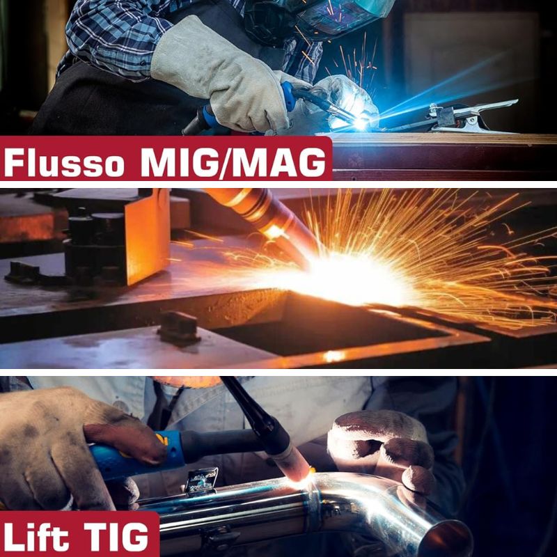 С този заваръчен апарат можете да заварявате различни материали с едно компактно устройство. Това означава спестяване на място, удобство и най-вече максимална гъвкавост: от малки домакински задачи до най-взискателните работилнически проекти, винаги ще имате правилния инструмент под ръка.